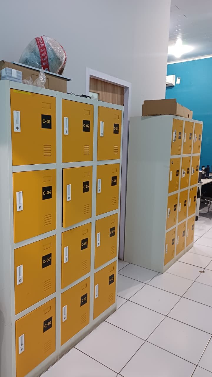 Loker-loker tersebut ditempatkan di titik strategis di dalam kantor, sehingga mudah diakses oleh karyawan tanpa mengganggu aktivitas kerja. Dengan adanya fasilitas ini, barang-barang pribadi seperti tas, helm, hingga perangkat kecil dapat disimpan dengan aman dan rapi. Hal ini tidak hanya menjaga keamanan barang, tetapi juga membantu menciptakan suasana kerja yang lebih bersih dan tertata.
