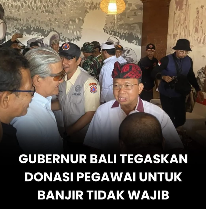 Gubernur Bali Wayan Koster menegaskan bahwa donasi dari aparatur sipil negara (ASN) maupun pegawai pemerintah daerah untuk penanganan bencana banjir tidak bersifat wajib, melainkan murni sukarela sebagai bentuk gotong royong di tengah situasi darurat. Penegasan ini disampaikan di Denpasar, Kamis (18/9), merespons polemik yang mencuat setelah beredarnya pesan di media sosial mengenai tarif donasi yang disebut-sebut dibebankan kepada ASN dengan nominal bervariasi mulai Rp150 ribu hingga lebih dari Rp1 juta, tergantung jenjang jabatan, termasuk pegawai pemerintah dengan perjanjian kerja (PPPK). Informasi yang beredar luas itu menuai sorotan publik karena memunculkan kesan adanya pungutan resmi tanpa dasar hukum maupun surat keputusan formal. Menjawab hal tersebut, Koster memastikan bahwa Pemprov Bali tidak pernah mewajibkan potongan dana, melainkan hanya membuka ruang bagi ASN yang berkenan menyumbangkan sebagian penghasilannya secara ikhlas. “Itu dana gotong royong sukarela, kalau mau ikut silahkan, kalau tidak juga tidak apa,” ujarnya menegaskan.