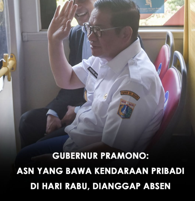 Jakarta — Gubernur Pramono Anung menegaskan kebijakan larangan penggunaan kendaraan pribadi bagi Aparatur Sipil Negara (ASN) pada hari Rabu. Dalam pernyataannya, Pramono menekankan bahwa ASN yang tetap nekat membawa kendaraan pribadi ke kantor akan dianggap tidak masuk kerja.