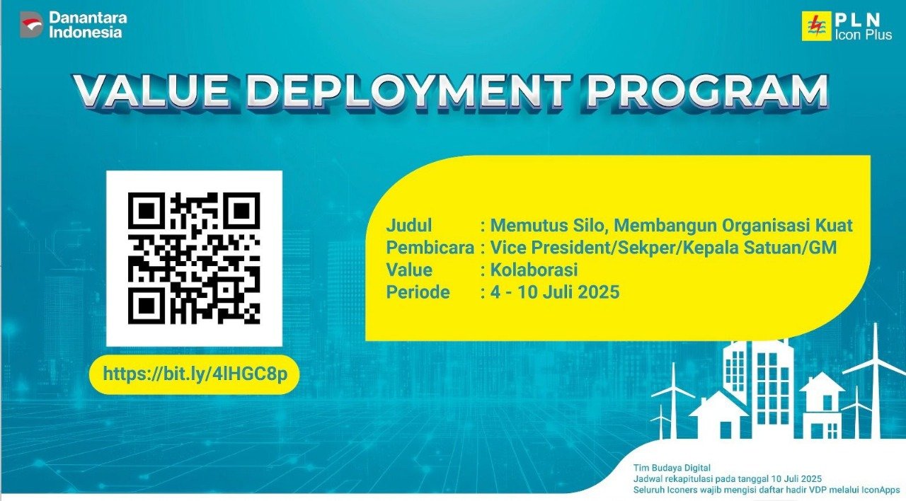 Denpasar, Juli 2025 – Dalam upaya memperkuat budaya kolaboratif dan membangun organisasi yang solid, PLN Icon Plus SBU Regional Bali dan Nusa Tenggara menyelenggarakan kegiatan Value Development Program (VDP) bertajuk “Memutus Silo, Membangun Organisasi Kuat.” Kegiatan ini menjadi ajang refleksi bersama untuk membangun sinergi lintas fungsi demi mencapai kinerja unggul.
