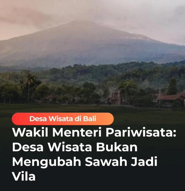 Wakil Menteri Pariwisata Ni Luh Puspa menegaskan konsep desa wisata tidak boleh disalahartikan sebagai ajang mengubah lahan produktif—termasuk sawah—menjadi bangunan akomodasi seperti vila. Menurutnya, keberhasilan desa wisata bukan diukur semata dari seberapa ramai kunjungan wisatawan, melainkan dari seberapa kuat desa tersebut membangun kemandirian ekonomi, menjaga budaya, dan menerapkan tata kelola berbasis komunitas. Penegasan ini disampaikan sebagai pengingat bahwa desa wisata lahir dari semangat pemberdayaan masyarakat, bukan ekspansi pembangunan yang berpotensi menggerus ruang hidup warga dan fungsi ekologis pedesaan. Wamenpar menilai, desa wisata yang sehat adalah desa yang mampu memaksimalkan potensi lokal tanpa mengorbankan identitas dan lanskapnya. Ketika sawah dan ruang produksi pangan berubah menjadi deretan vila, desa kehilangan akar utamanya—yakni kehidupan agraris, sistem sosial, dan budaya yang justru menjadi daya tarik utama wisata berbasis desa.